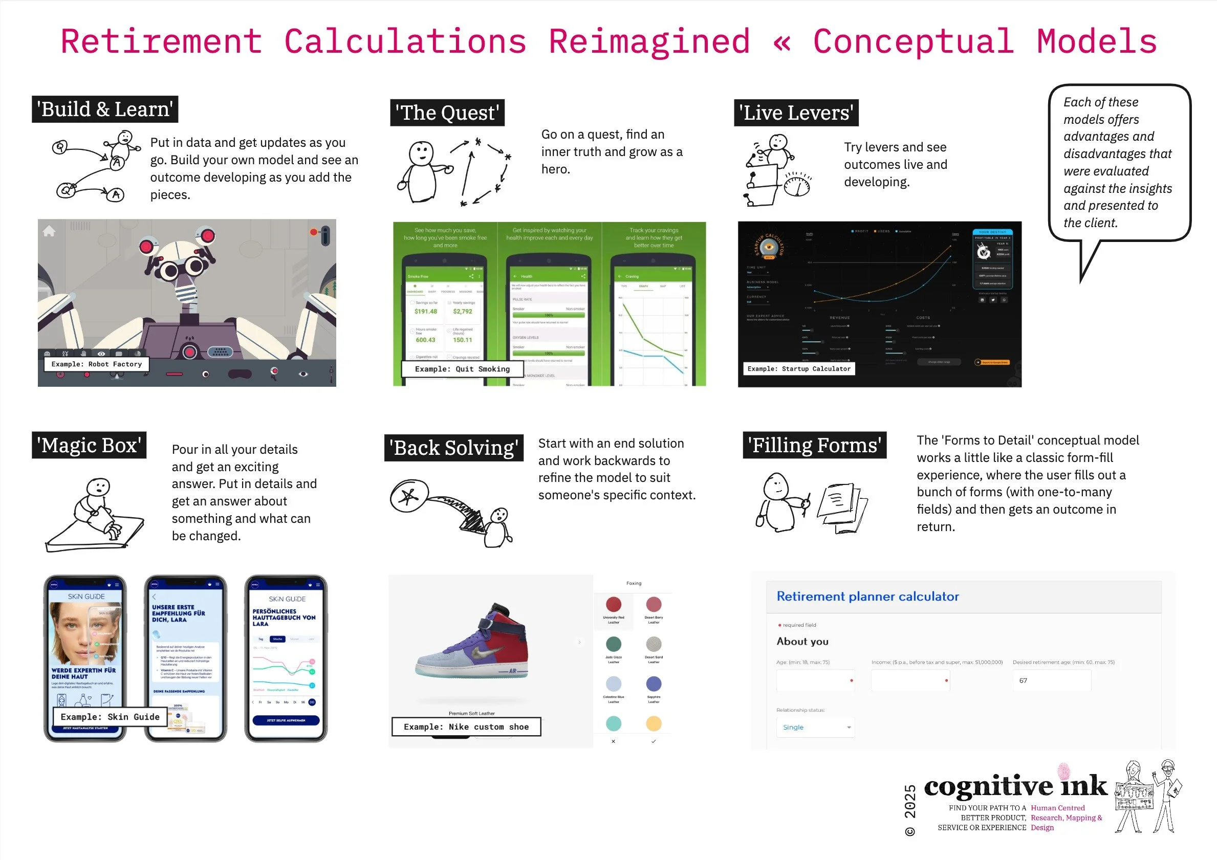 Which left us to pick a conceptual model that would help people figure out how to build a practical and positive understanding of retirement.